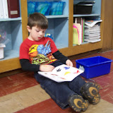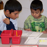 Kindergarten students learn through play. That is why it is so important to schedule time each day for students to participate in 'developmental' or 'free choice' centers. In our classroom, students participate in Free Choice every day. During free choice students are able to particpate in a variety of centers. At this time, the centers available include: art, writing, legos, reading, math, blocks, barn, puzzles & games, play dough, computer, and iPods. These centers will change throughout the school year to reflect what we are learning during the day. Ask your child which centers they like best.